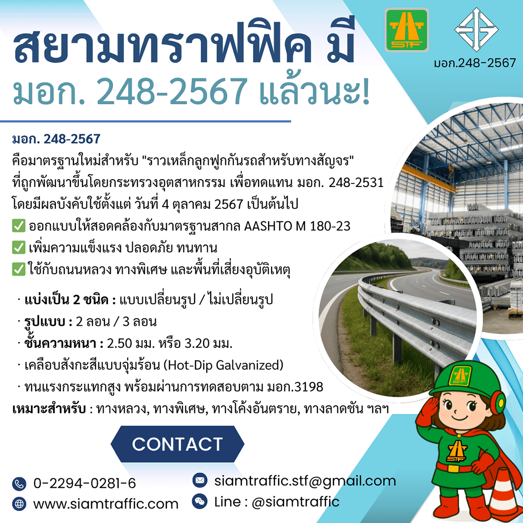 ส่วนหนึ่งของบริการและผลิตภัณฑ์ของบริษัท สยามทราฟฟิค จำกัด ผู้นำด้านการผลิต จำหน่าย และติดตั้งอุปกรณ์จราจรทุกชนิด ด้วยประสบการณ์และความชำนาญในการดำเนินงานมากกว่า 30 ปี ได้รับความไว้วางใจจากหน่วยงานทั้งภาคราชการ รัฐวิสาหกิจ และหน่วยงานเอกชน การันตีความเชื่อมั่นรางวัลด้วยผลิตภัณฑ์ยอดเยี่ยม จากรัฐมนตรีกระทรวงคมนาคม และยังได้รับการรับรองมาตรฐานระบบคุณภาพ ISO 9001